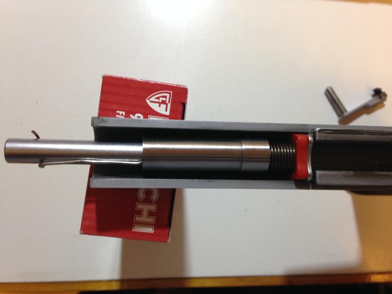 Hice la foto así para que se viera claro hasta dónde puede retoceder la varilla, De hecho es en ese punto "de asiento" en el que la varilla empuja a la corredera hacia a atrás.