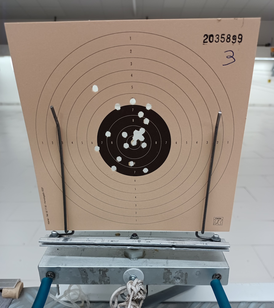 Por la noche lo probé en casa entrenando en seco y a partir del día siguiente cambié radicalmente mi posición de tiro. No solo no me sufren las lumbares y el pie (porque los que estamos operados de la cadera también tenemos que recordar que es un barómetro impresionante y suele molestar cuando avisa de cambios de tiempo y las lluvias jejeje), sino que he mejorado las agrupaciones. Bastante.