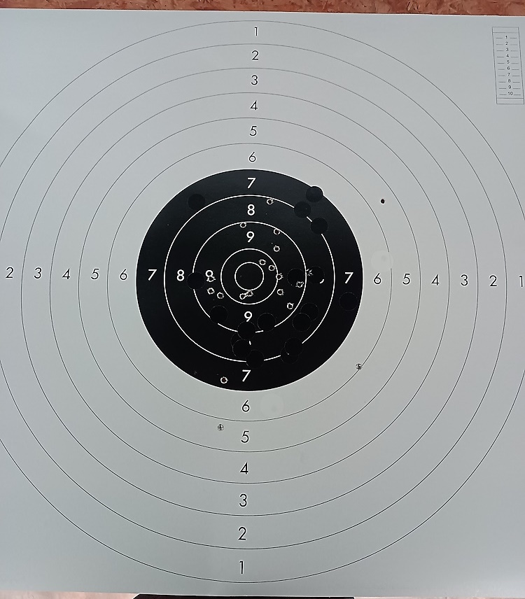 Todos los impactos que se ven de la zona negra hacia abajo son con lo que yo creo que es el cassette del 22 corto. El resto, sin ponerme demasiado estricto en cuanto a posición de tiro, ahí están. Genial.
