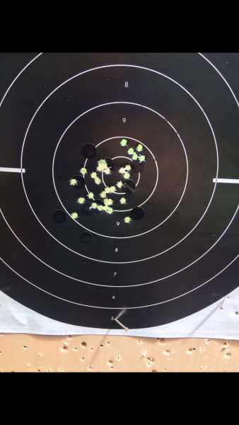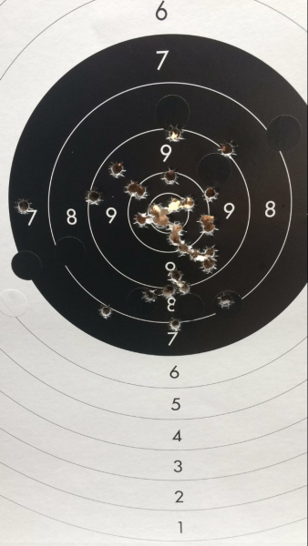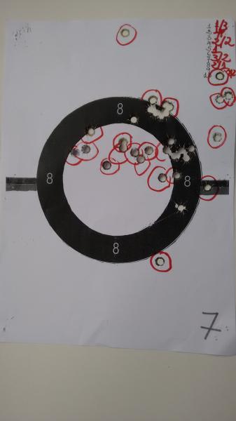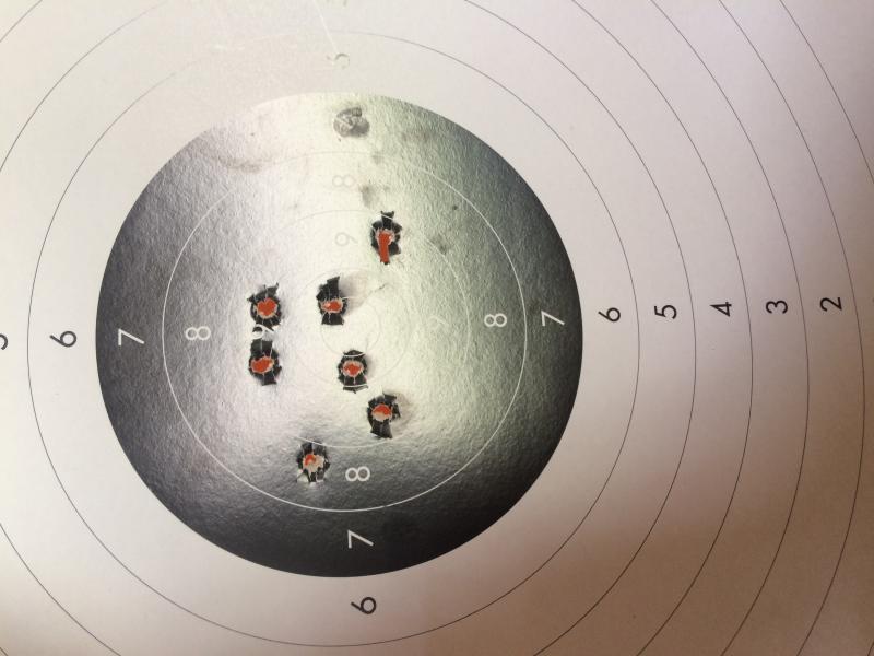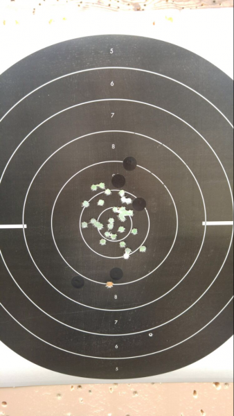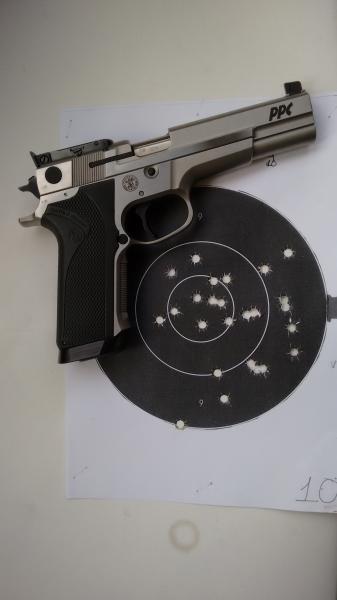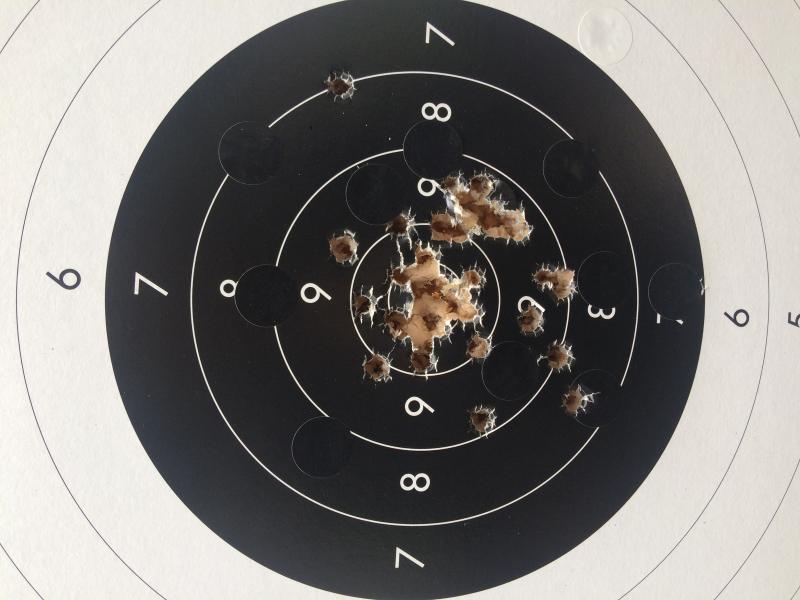 Aquí pongo unas dianas de la hermana de las 952 y 5906PPC la SW Targetchampion que va muy fina también con un disparador buenísimo, lo peor que tiene a mi gusto son las cachas muy gorditas por su cargador de gran capacidad(15).La municion es recargada con 4graims de CSB1-B.
