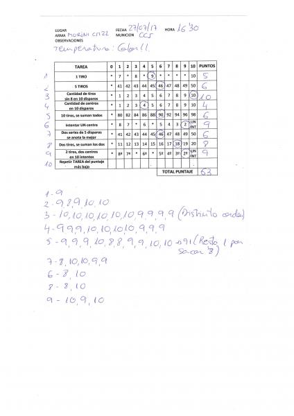 He variado uno de los ejercicios, en lugar de 12 disparos hice 10.