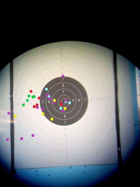 luego le cambié el cañón al 32 , y fui a tiran un poco , y tire 30 tiros a precisión sabiendo un poco más sobre la sensaciónes y me salió esto ....y luego estando relajado sin los nervios de la competición..