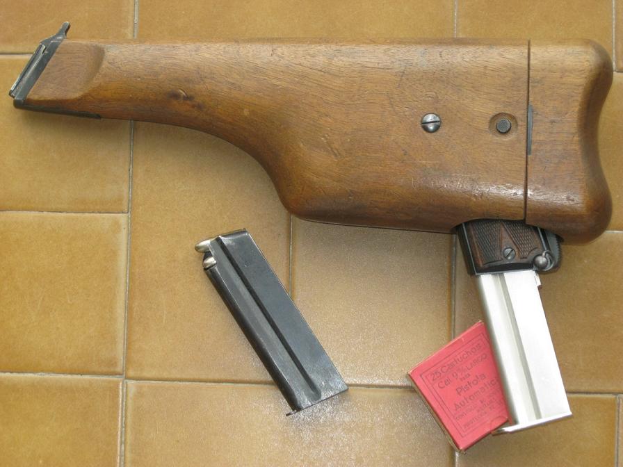Esta pistola es realmente una mod M al que se añadió el dispositivo a ráfagas y se le adaptó una funda-culatín de madera al estilo de las Mauser C-96