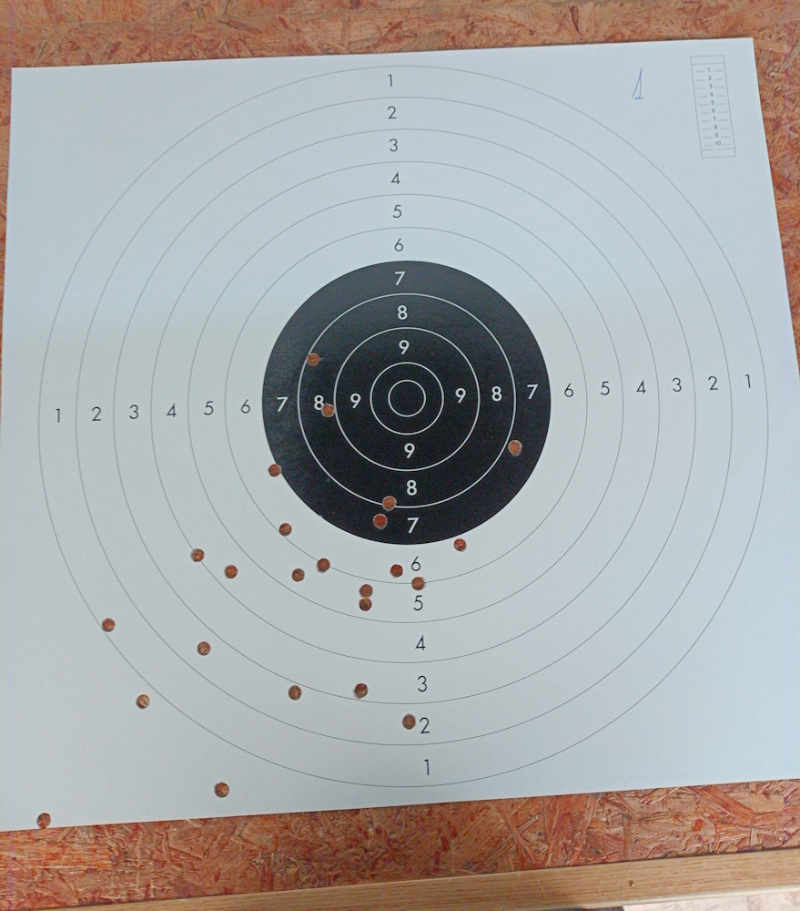 Antes de 30 disparos, 1/4 a la zona negra y 3/4 en lo blando. Ahora 2/3 en la zona negra y los gatillazos han menguado un montón.