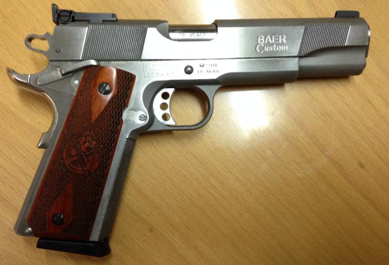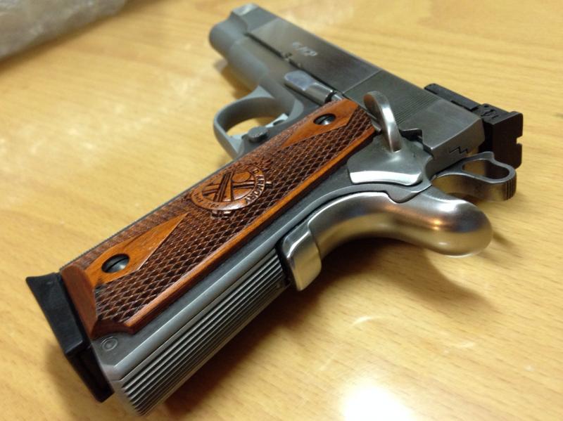 Una es Les Baer Custom Concept V, .45ACP 5". Le puse unas maravillosas cachas de madera de cocobolo.