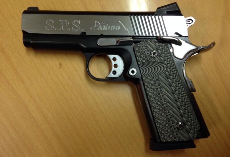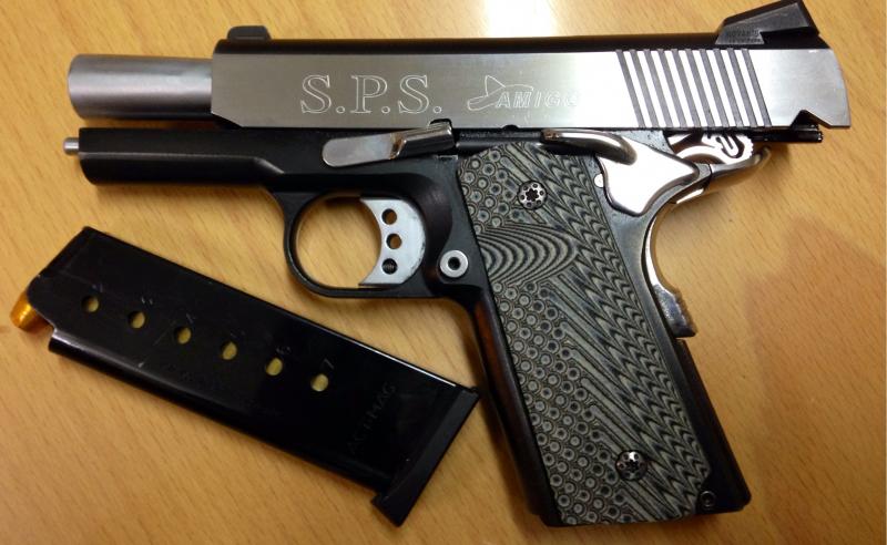 La de abajo es una SPS AMIGO, 45 ACP, 3,5", enteramente de acero inox. Las cachas y sus tornillos son una pasada y tienen un agarre del copon