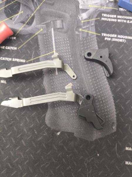 Lo que acabo de hacer es desmontar las dos colas disparadoras y cambiarlas ya que no me gusta el recorrido de la barra del disparador que trae Apex, tiene una angulación diferente a la original pero customizando prefiero la barra de origen.