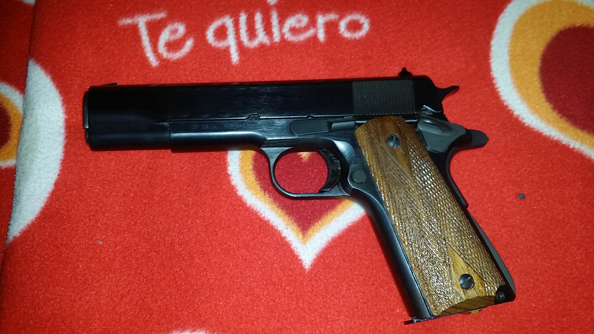 Aquí está la mia por fin,con cachas cambiadas,norinco 1911 A1