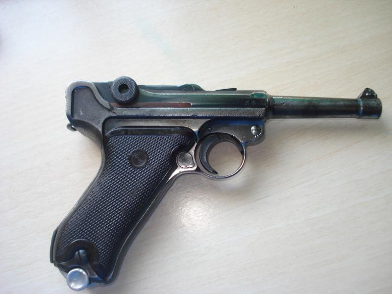 hola,despues de ver las maravillas que teneis,con esos pavonados impolutos,me da apuro de sacar a mi viejita,pero bueno hay va,p-08 vopo fabricada por mauser en 1940 toda numeracion coincidente,practicamente sin pavon,pero sinceramente me gusta mas asi que repavonada,si esta pistola hablara,un saludo