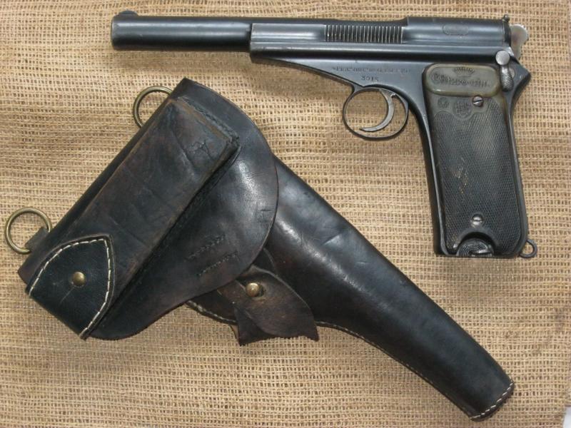 Seguramente ese cargador de herradura de la Ascaso fue una copia de otra pistola española.Aqui os dejo la pistola ASTRA UNION cal 7,65mm con un impresionante cargador de herradura de gran capacidad (40 cartuchos) con el utensilio para facilitar el llenado.