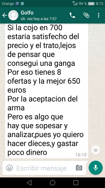 Yo tambien me apunto al equipo de SUSURRO y el que quiera todo impoluto que se vaya a la armeria y la compre nueva y pague los 2400 pavos.