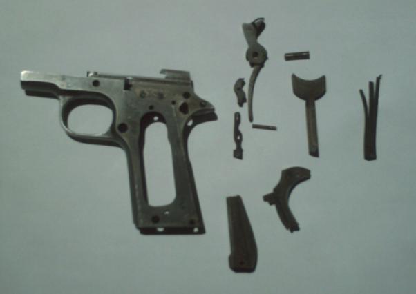 Está inutilizado por obturación del cañón y corte de la aguja percutora, además estaba inútil para disparar por una hernia con fisura en el cañón posiblemente por un disparo con un proyectil taponando el cañón.