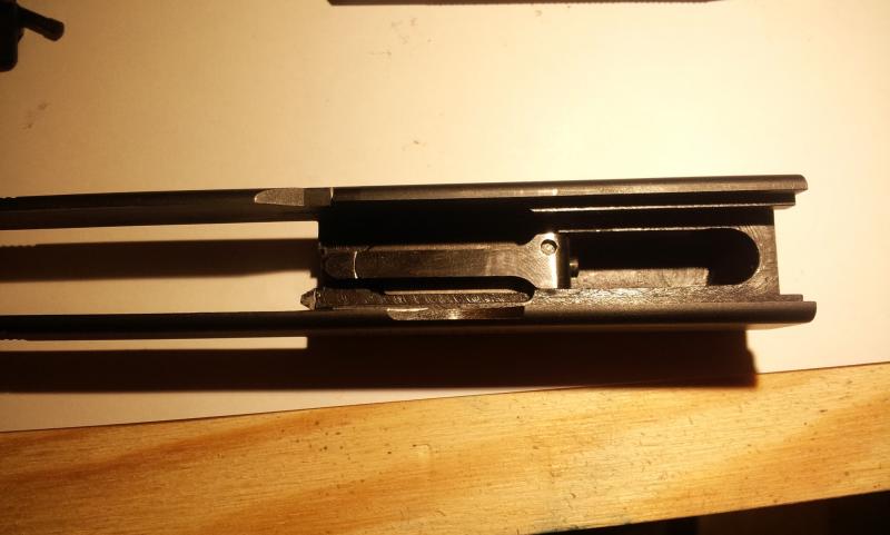 Aquí vemos el pasador de ajuste de dureza del disparador y su fleje.