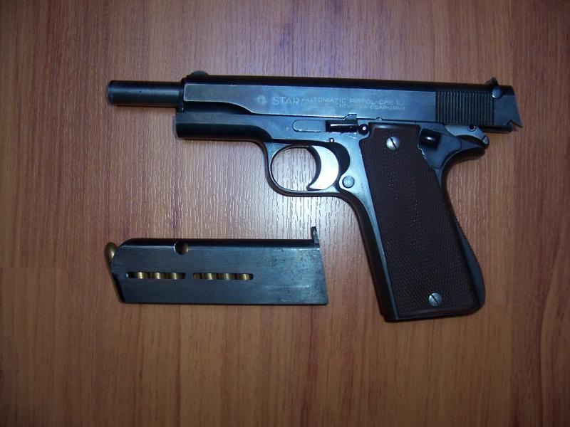 Se trata de una STAR A de 1934 (pacopi tiene una igual con el escudo de la Guardia Civil), que me regaló un compañero de oficio y que a el se la regaló alguien con titulo nobiliario de Badajoz, que no recuerdo, que la compró cuando empezó la Guerra Civil del 36.