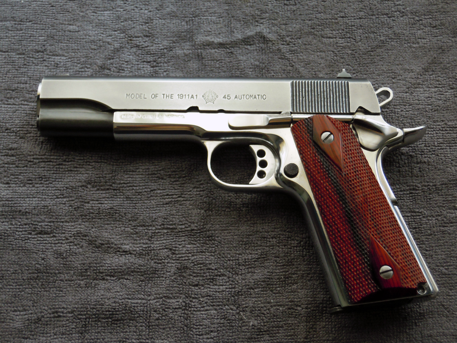 Debo deciros, que estoy contento con ella, aunque es una humilde copia china, su acabado, que acepta todos los repuestos y piezas del mercado, siempre es susceptible de mejoras, y su ajuste, que ahi si que no se puede hacer nada, es tan bueno como una Colt standard, pues es la copia exacta, a centesimas de mm. en todas sus cotas, de la 1911 A1. ( Tengo los planos originales de Browning )