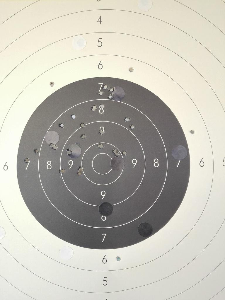 Primero me puse a 10m y sobre un soporte algo cutrecillo disparé con el arma casi fija, sin tocar nada aún para poder comparar.