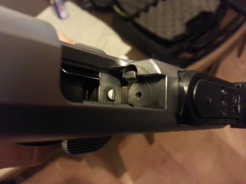 Hola a todos, acabo de pillarme una STI TARGET MASTER de segunda mano y al limpiarla he observado que alrededor del agujero por donde sale la aguja hay una paqueña muesca en forma de media luna.
