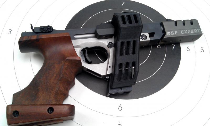 Os presento un nuevo caza vainas para la pistola Walther GSP Expert basado en mi propia experiencia en el tiro con este arma, el diseño por ordenador y las impresoras 3D, está fabricado en una sola pieza de plástico ABS de alta resistencia de color negro aunque se podría hacer en más colores.