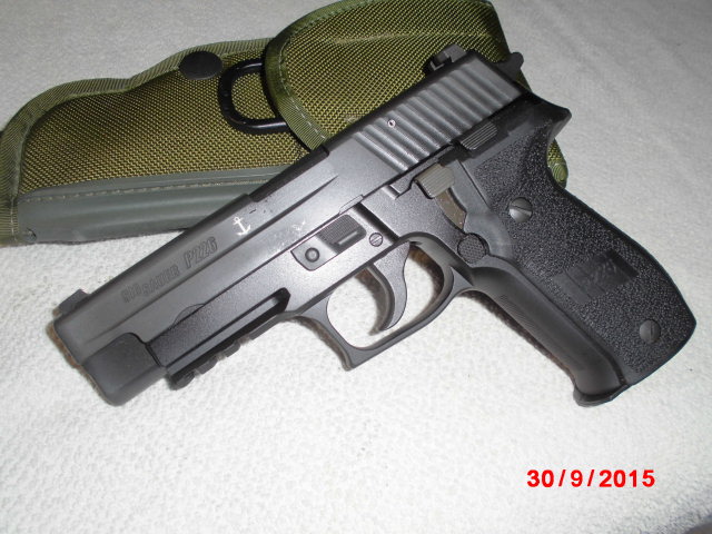 Lo cierto es que es como una P226 estándar, pero con el raíl en el armazón, recubrimiento anti corrosión en todas sus piezas, (Menos el alza porque hoy la he limpiado y tenia una mancha de oxidación) y el ancla en la corredera.