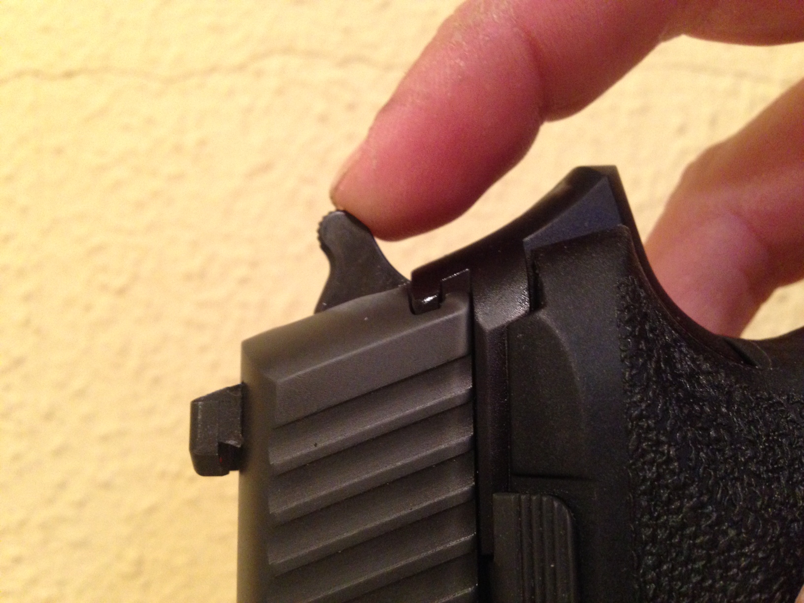 Es una característica de las sig sauer. El juego que da el martillo es para evitar que con bala en recámara pueda perctir accidentalmente. La P 229también lo tiene, y la inmensa mayoríade Sig Sauer. Las 1911 en general tienen una posición de martillo anterior al montado total que hace la misma función.