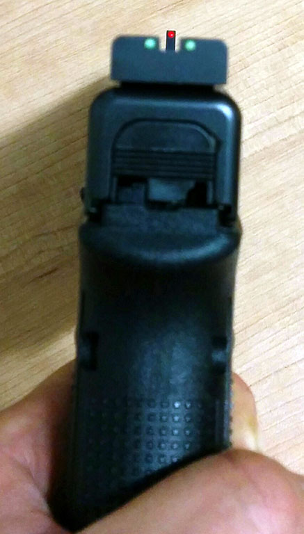 tengo una Glock 17 a la que le tengo puesta miras LPA de fibra óptica (tanto punto como alza) y es lo mejor que he probado, queda tal que así:
