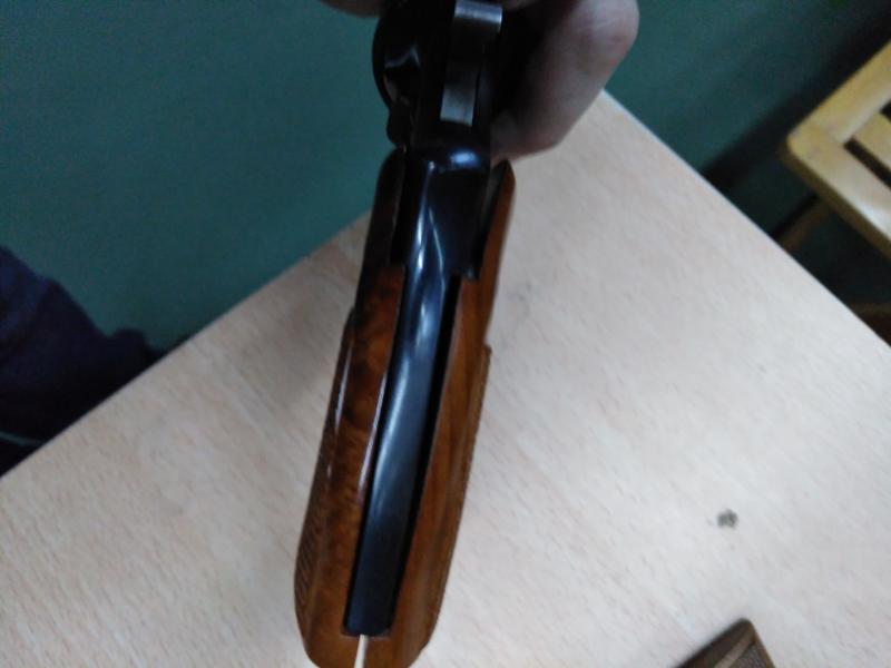 En cuanto al armazón, en efecto, los hay redondeados, y los hay con armazón "cuadrado". También los marcajes varían: los hay que ponen la leyenda "Terminator" en el cañón, los hay que no ponen nada, y los hay, como el mío que ponen 44 INOX. Por cierto, la mayoría venían de fábrica con unas cachas pachmayr modelo Compac. El mío lo tengo con unas "gripper" que mejoran la estética y la absorción del retroceso, pero para estética, mejor unas de madera. Las hogue de neopreno se instalan sin problemas, pero las de madera en armazón N de S&W no van porque no coincide el tornillo (tengo un 28 Patrolman y os aseguro que no valen). Tampoco las del Astra 357, al que tuve la oportunidad de comparar con su hermano mayor, y ciertamente el armazón del 44 es mucho más....masivo.