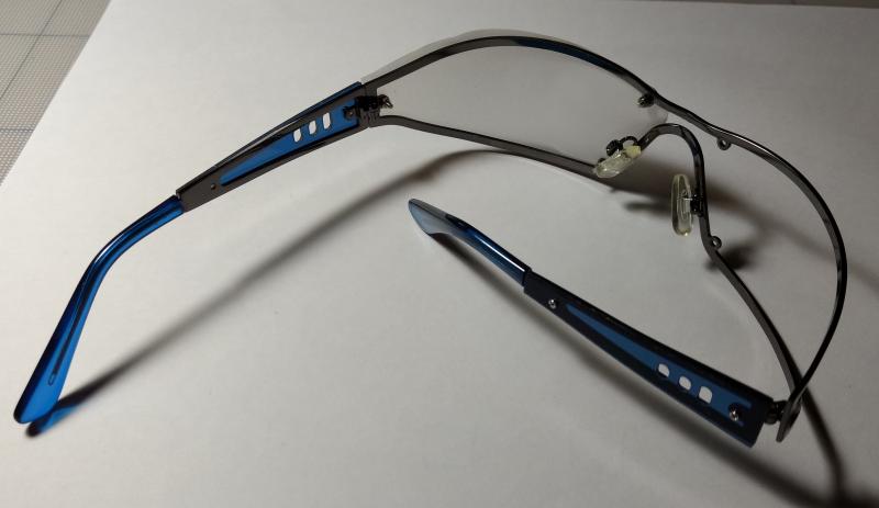 Inauguraré el tema con unas gafas para tiro versión: "mejor gástate el dinero en pistolas" :lol: . Básicamente son unas gafas de sol malas que venían con una revista a las que les he quitado un cristal y en el otro lado le he puesto un papel impreso en negro detrás del cristal, para bloquear la visión del ojo que no apunta y que te distraigas lo mínimo :D .