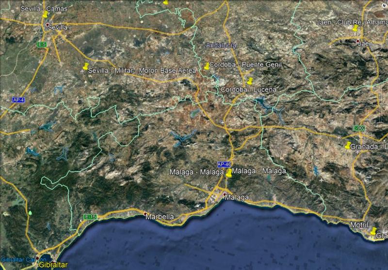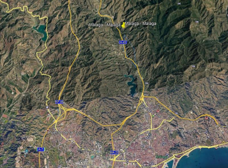 Por si no tienes descargado el google earth, te adjundo dos imágenes. Una es de Málaga y la otra de poblaciones más cercanas.