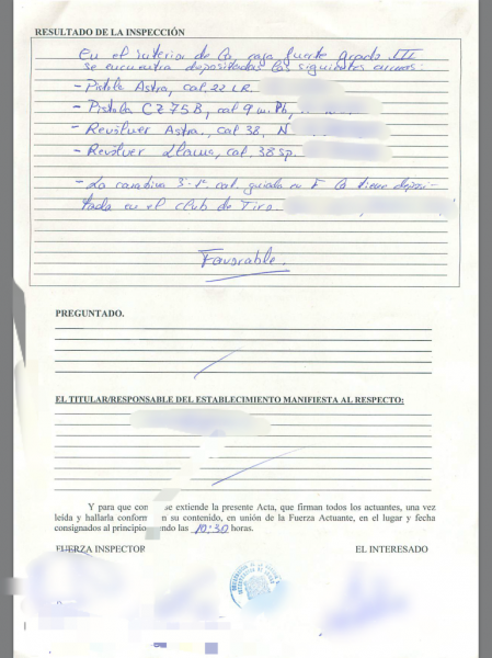 tú mismo, si te llaman y conciertan cita para inspección y te niegas, en el mejor de los casos cuando te toque la renovación de las licencias, verás que risa te entra cuando te digan que nó y que deposites las armas.