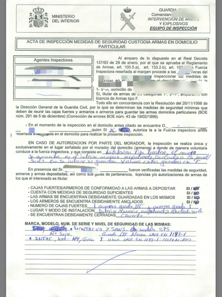 Guardias civiles de mi IA. han pasado hace unos días a inspeccionar mis armeros y mis armas en mi domicilio, te levantan un acta , la mía ha sido favorable ya que lo tengo todo cumpliendo más de lo que la normativa nos obliga.