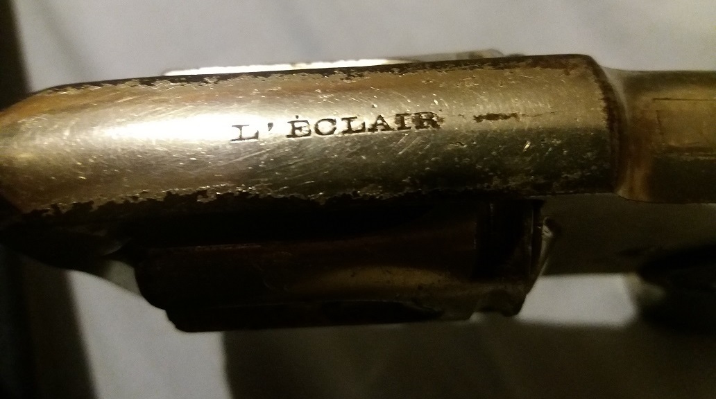 Hola foreros, ha llegado a mis manos este revolver 5.5 velodog inutilizado y me gustaria saber su fabricante y periodo de fabricacion, la unica inscripcion que tiene es "l'eclair" en la parte superior del mismo y aunque con esta denominacion vendia revolveres la compañia Garate Anitua y cia. de Eibar, no encuentro ninguna otra marca que distinga al fabricante.
