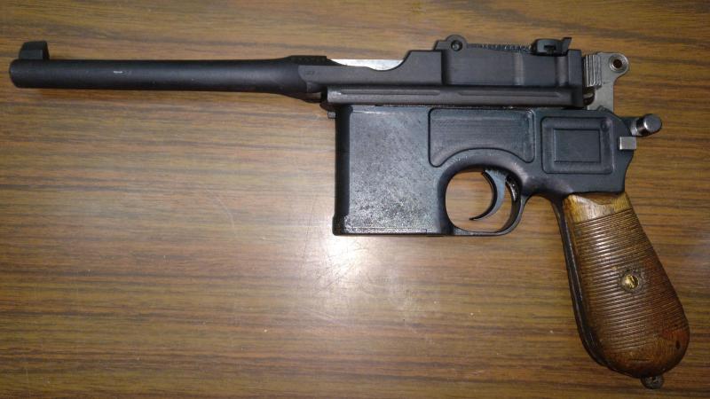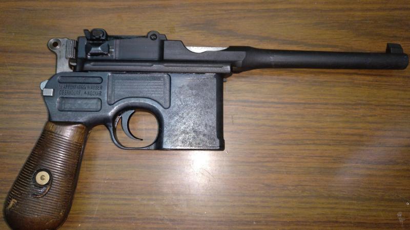 Pues despues de la espera, por fin llego el arma, su estado es normal, el interior del cañón esta bien, pero con desgastes debido al uso y al tiempo, aunque se ve y mantiene el estriado sin que este deteriorado, el estado del piecerio es buen estado y todos los números son coincidentes, tengo dudas si las cachas son las suyas o de otra C96, ya que no las he podido desmontar.