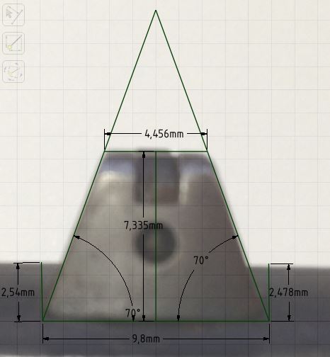 He estado midiendo la anchura y altura de la cola de milano de mi pistola, de un boceto que he visto que pusiste hace tiempo y me da las siguientes medidas: