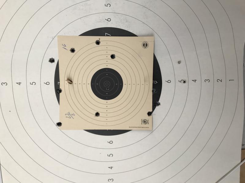 En las dos dianas que se ven en las fotos y disparando en una con apoyo de bolsa (mientras corregía cada cinco tiros con mazo percutor de bronce)y la otra a mano alzada se y ya centrada y siempre a 25 metros, se puede ver que mi CZ 75 COMPACT , es mucho mas precisa que la mano que la dispara. En mi caso pir lo menos.