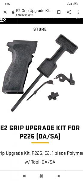 Hoy he estado en Top Gun en Alicante y tenian varias de Sig226 en una ponia xtrem grip pero no me he fijado si ponia E2 si quieres llama y pregunta.