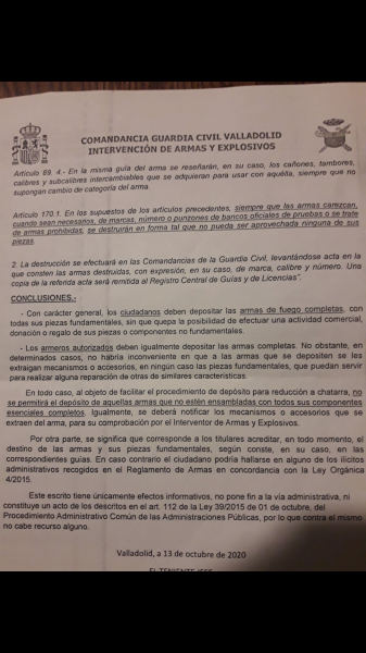 Amra escribió:Siendo muy enrevesados puede ser que al haber destruido una parte fundamental de tu arma corta como es el cilindro ó tambor ellos la consideren como arma sin punzones y deba ser destruida al completo.