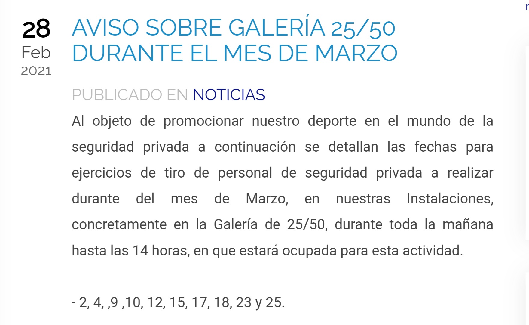Son unos impresentables. En el mes de marzo la galería de 50 m no va a estar disponible para los federados durante 10 días porque la alquilan para entrenamientos de tiro a empresas de seguridad privada. Y encima tienen los huevazos de decirnos que es para promocionar el deporte del tiro entre los miembros de la seguridad privada.
