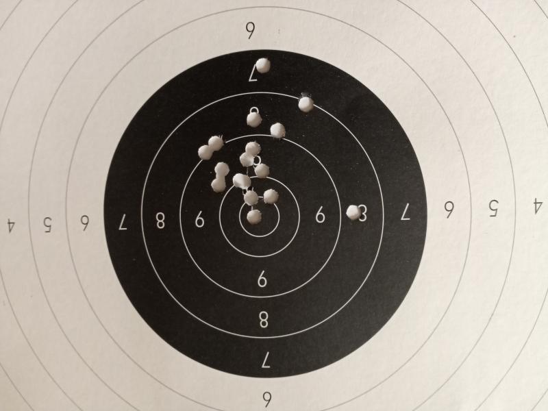 Recién empezar a tirar y no salirse del negro es tener potencial de buen tirador. Un poco de familiaridad más y entrenamiento, y no saldrá del 9 con varios dieces.