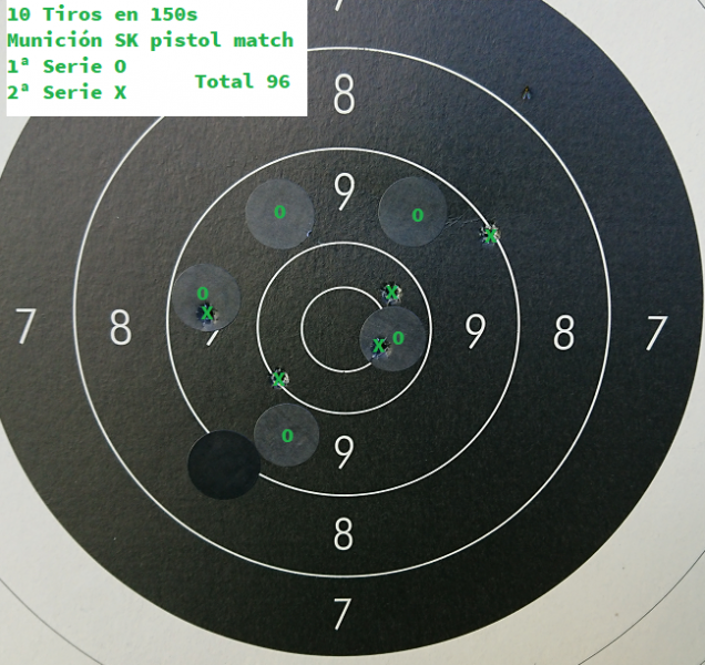 2º He probado a tirar con SK Standard y SK pistol match (esta última es más suave), total 200 tiros. Mostraré los 10 primeros, que han sido realizados a precisión, el resto del entreno en 20 Seg.