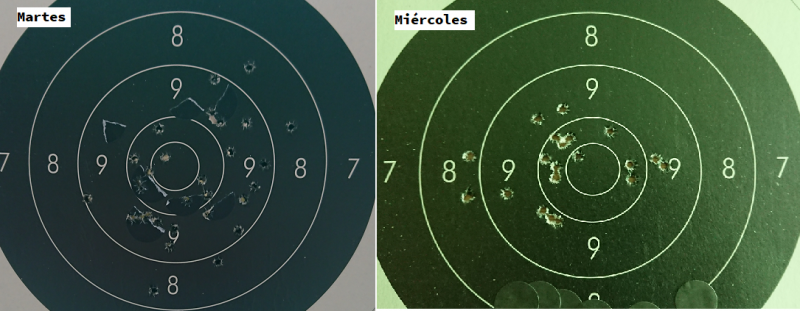 Al no estar acostumbrado al gatillo y no necesitar recuperar por completo el recorrido me han "saltado" algunos tiros (varios 8 y un 7 que casi va al 6)