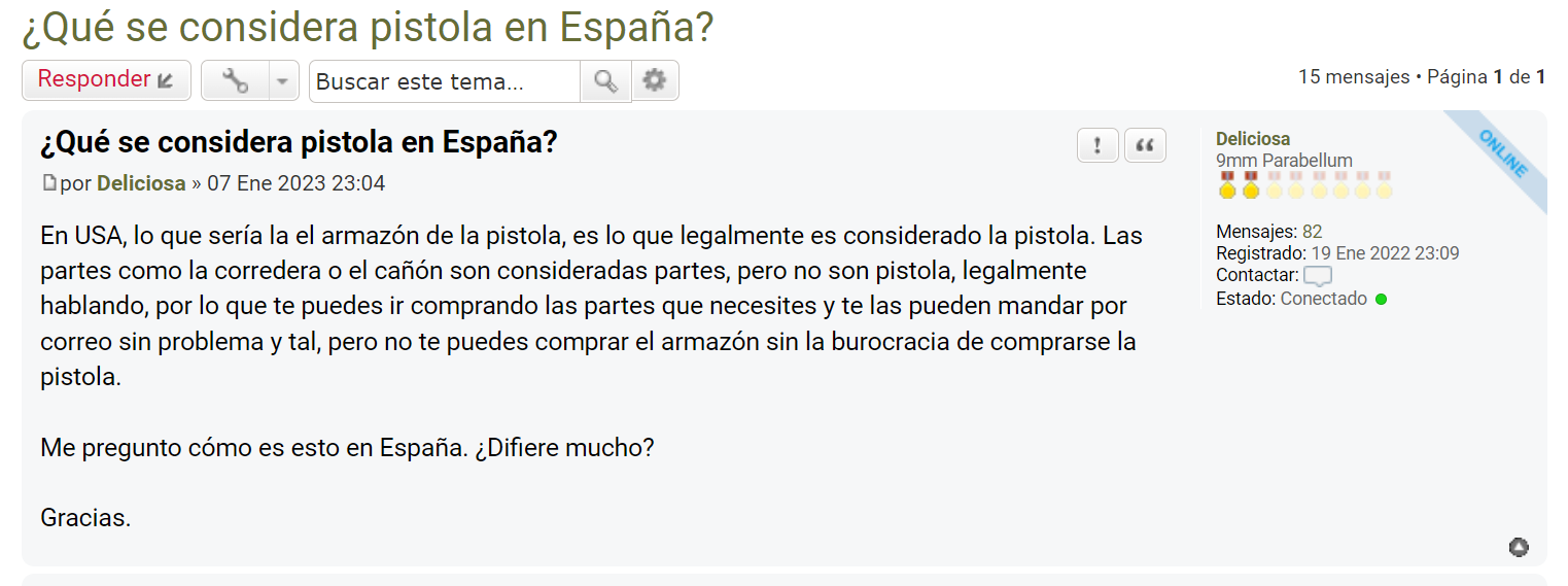 También sigo opinando, y que por opiniones que no sea, que ya que demuestras tantos conocimientos sobre normativas y reglamentos españoles sobre armas de fuego, como es que se te ocurre hacer una pregunta tan rematadamente estúpida, como preguntar "que se considera pistola en España", o es que eso, resulta que no lo sabes????
