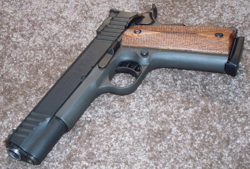 Hay una STI que tiene un precio espectacular, el modelo "Spartan". Monohilera, acabado parkerizado (un tratamiento oxidativo con ácido de la superficie metálica), cachas de madera de cocobolo, 8 cartuchos y con 5 pulgadas de cañón. Medidas de la Colt "Goverment". Puedes encontrarla nueva por unos ¡700 euros!. La primera vez que vi lo que costaba pensé que se trataba de un error. La explicación es que el armazón, corredera y cañón son fabricados en Filipinas por la empresa "Armscor" siendo el resto de componentes STI. En STI las montan tras haber pasado estas piezas sus estrictos controles de calidad. No serán la creme de la creme pero por ese precio pudieran ser una opción interesante, tienen bastante buena pinta. En la página de STI puedes ver sus características completas y varias "reviews", la ponen muy bien (si no fuera así, supongo que STI no las mostraría).
