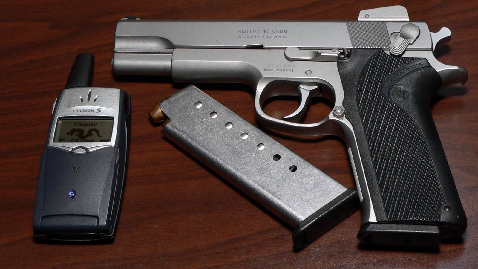 Quizás el modelo siguiente: S&W 4506.