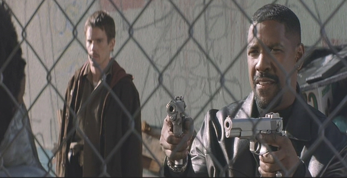 Por cierto, vaya estilo que tiene el amigo Denzel Washington de empuñar las pistolas, parece un banderillero.