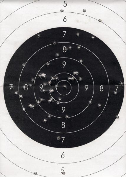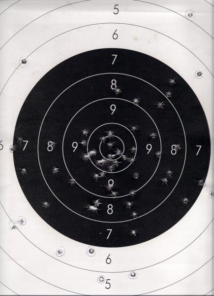 como dije, llevo poco tiempo en esto y soy novato total. normalmente, tirando "a precision", no me salgo del negro pero no suelo hacer agrupaciones demasiado buenas. vaya, parece que han pegado un escopetazo, jejeje. el caso es que he querido probar a tirar "a velocidad" (60 disparos distribuidos en 12 series de 5 tiros, calculo que solo a 7-8 segundos por serie) y, aunque se me van mas tiros fuera del negro, tambien hago mas dieces.
