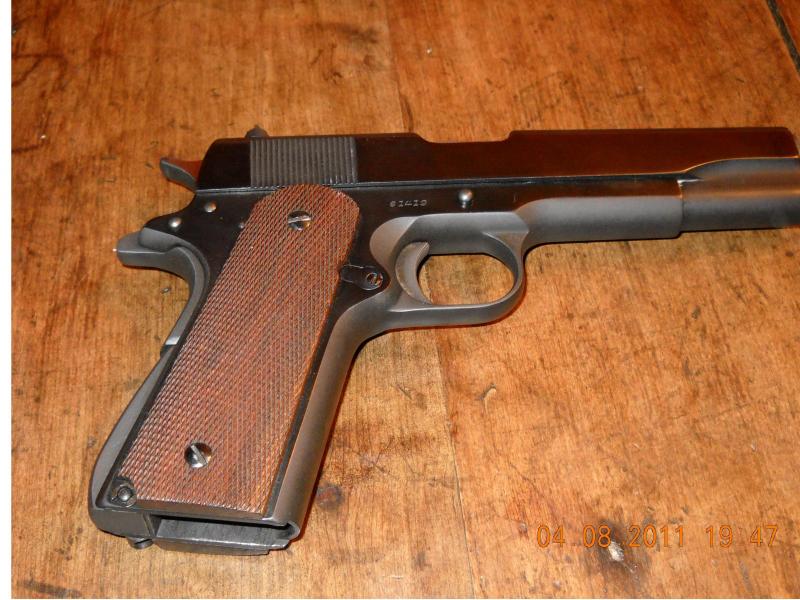 Pablo no se decirte el origen del arma, pero si te aconsejo que mires en la dirección de PISTOLA LLAMA 1911, GABILONDO Y CIA, por que da mucha información sobre la fabricación de la muy famosa 1911.