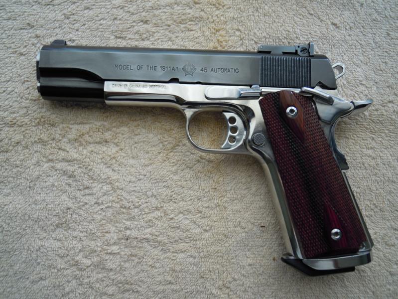 La Norinco 1911 A1 Cal. 45 ACP, la de cargador monohilera, es una copia exacta, a milesima de pulgada, de la Colt 1911 A1. Su acabado, es algo pobre, con alguna que otra huella de maquina herramienta, y un pavon poco vistoso, pero su funcionamiento, es impecable al 100%. Sus ajustes, muy buenos.