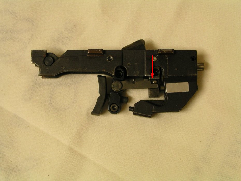 El recorrido muerto es algo que creo que no vale para nada, si acaso para perder el tiempo y tardar más. En las fotografías se ve un mecanismo de disparo de una Walther GSP, en la foto1 con un recorrido muerto (no hay contacto de la varilla del disparador con el fiador); en la foto2, el recorrido muerto se ha eliminado. En la foto1 tenemos que presionar el gatillo primero para eliminar el recorrido muerto (perdida de tiempo y de recursos), despues para el primer tiempo y luego para el segundo.
