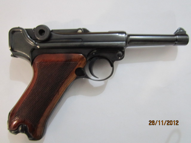 HOLA SOY NUEVO POR ACA ME GUSTARIA TENER INFORMACION SOBRE UN ARMA Q POSEO Y NO SE EXACTAMENTE LA VERDAD SE Q ES UNA LUGER P06 SE Q ES SUIZA PERO LA VERDAD ME GUSTARIA IDENTIFICAR LO MAS Q PUEDA ADJUNTARE FOTOS A VER SI ME PUEDEN AYUDAR SEGUN QUIEN ME LA VENDIO DICE Q ES DE 1906 FABRICADA EN SUIZA FUE ENPAVONADA RECIENTEMENTE, A ES CALIBRE 30 O MAS COMUNMENTE 7.65 PARABELLUM Y TIENE UN ESTUCHE Q NO LOGRO CONSEGUIR POR INTERNET PUES AL PARECER ES CIVIL SALUDOS A TODOS Y GRACIAS DE ANTEMANO