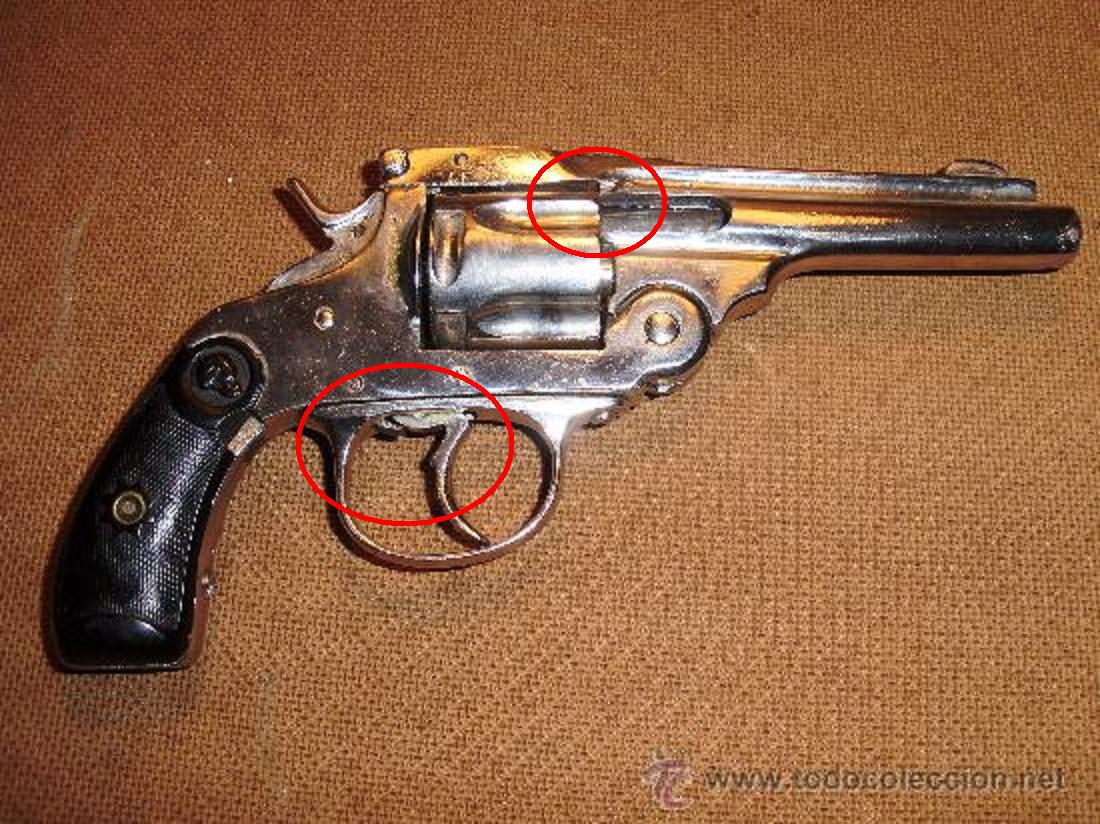 El calibre, si no está grabado, deberás averiguarlo midiendo el diámetro del interior del cañón, puede ser del .32, .38, o .44 S&W, aunque la versión más común en los eibarreses es el de 38 S&W (38 corto).